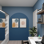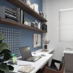 This project involved transforming a small, blank room into a functional home office for a couple with very different design styles. He preferred a modern, traditional look, while she gravitated toward boho and maximalist aesthetics. In addition to creating distinct workspaces for each, the room also needed to accommodate storage for clothes, home items, and books— requiring custom solutions to maximize the limited space.